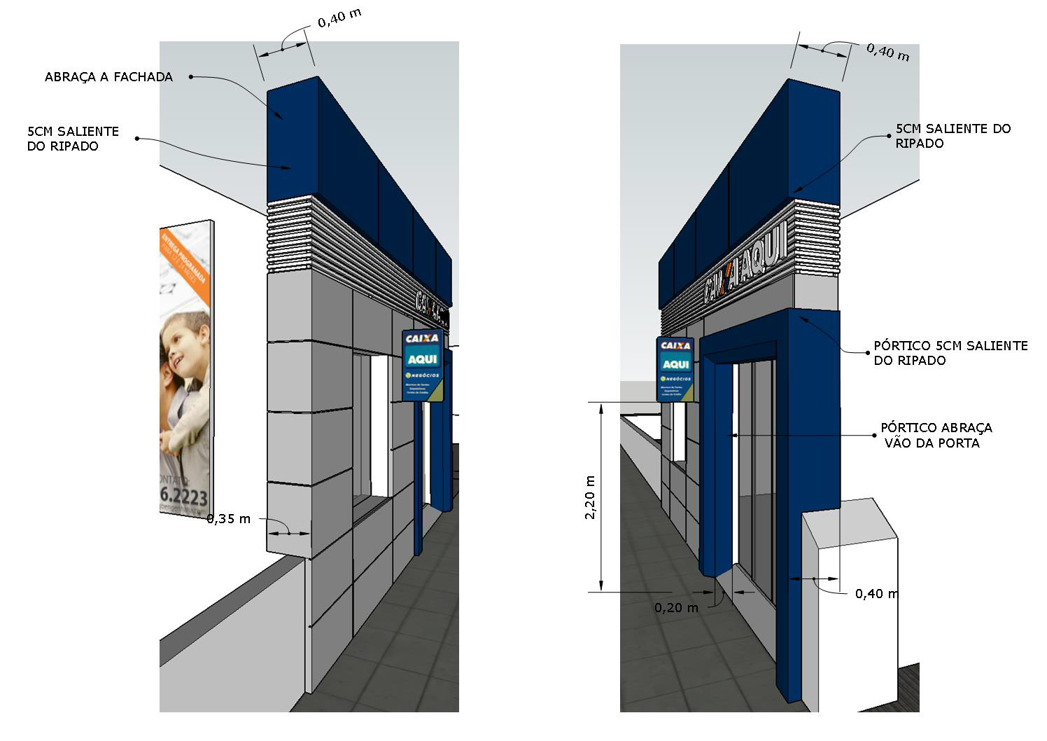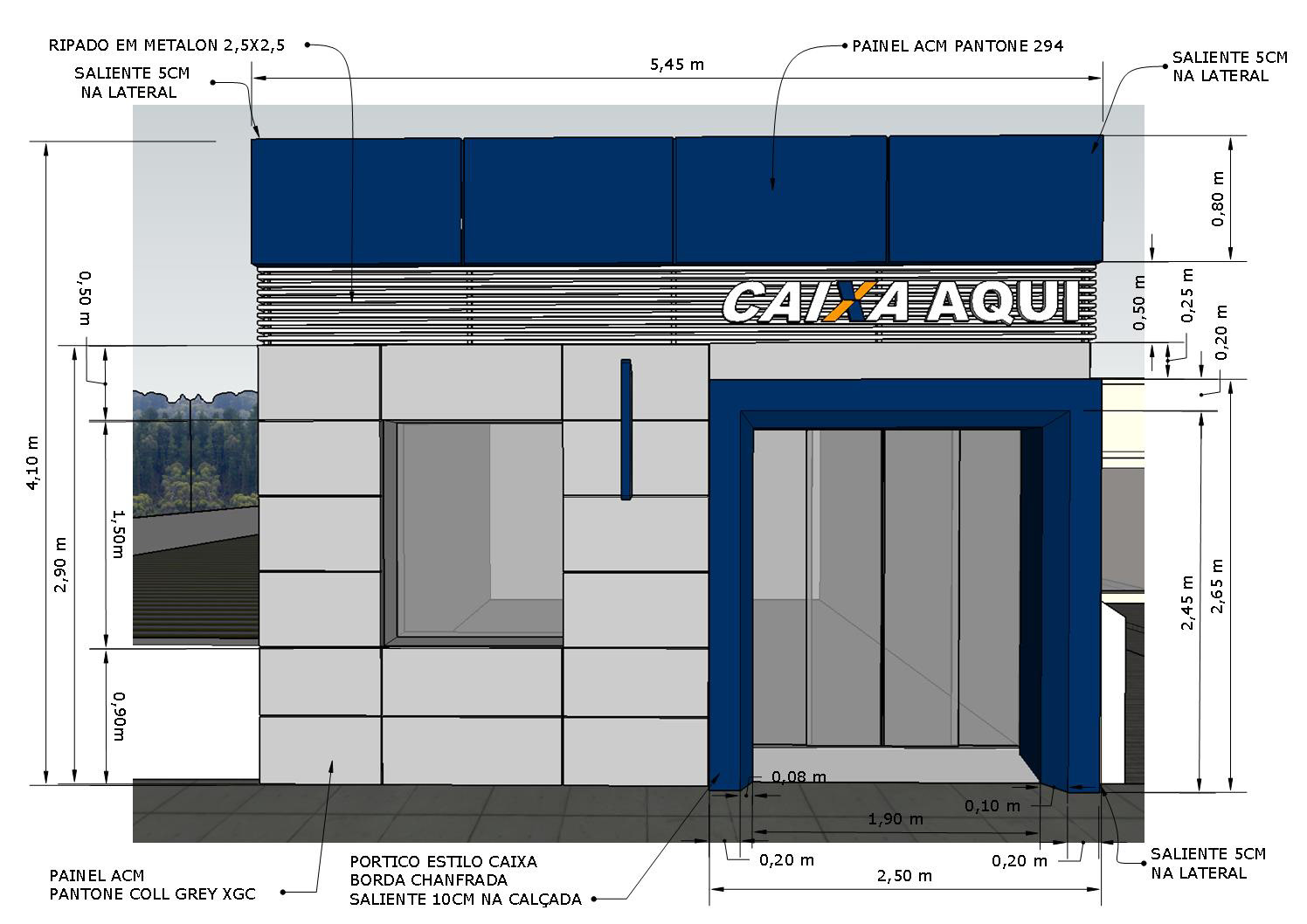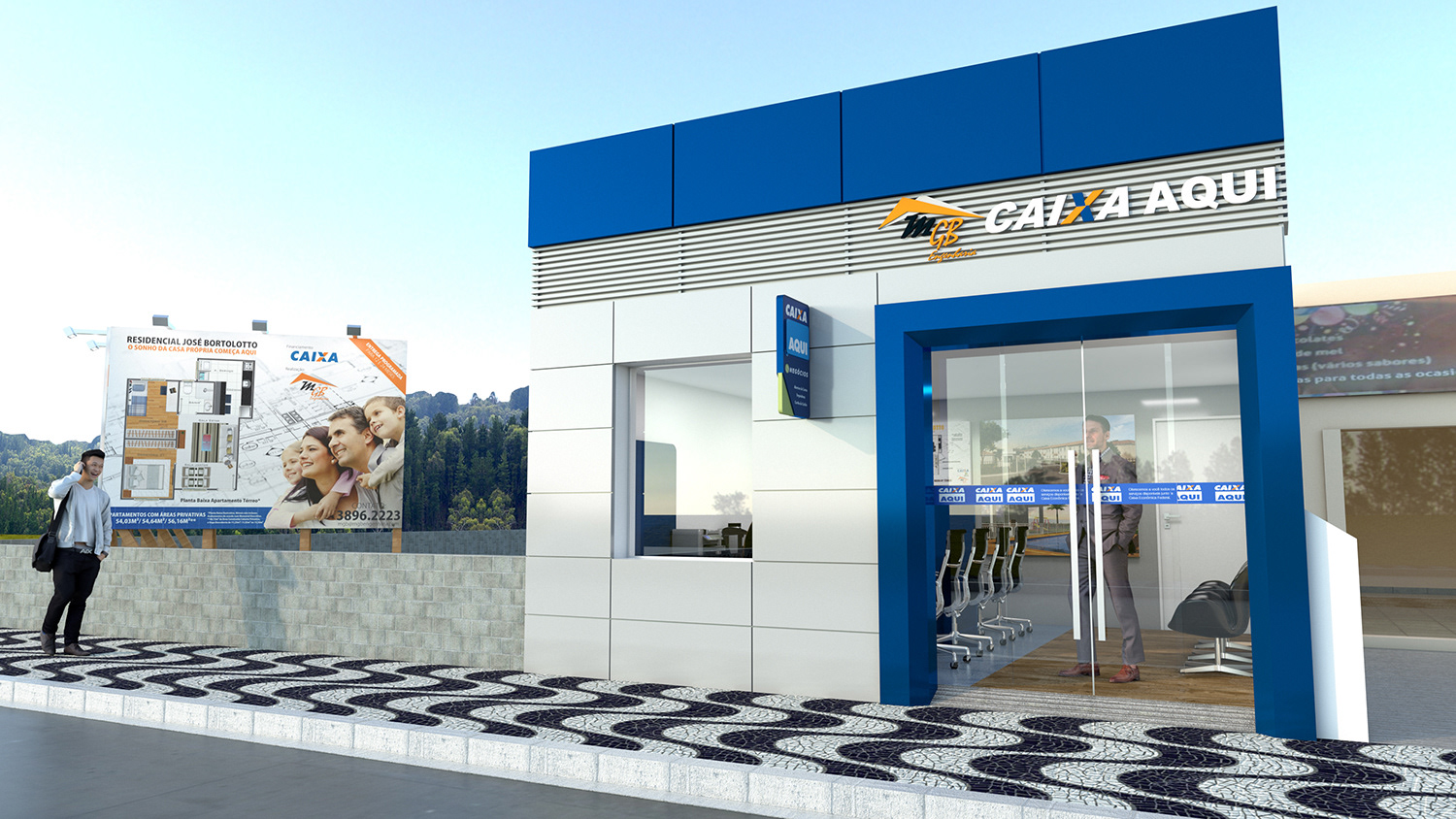 Projeto Comercial da unidade Caixa Aqui para a cidade de Santo Antônio de Posse. PROJETO: MM Arquiteto