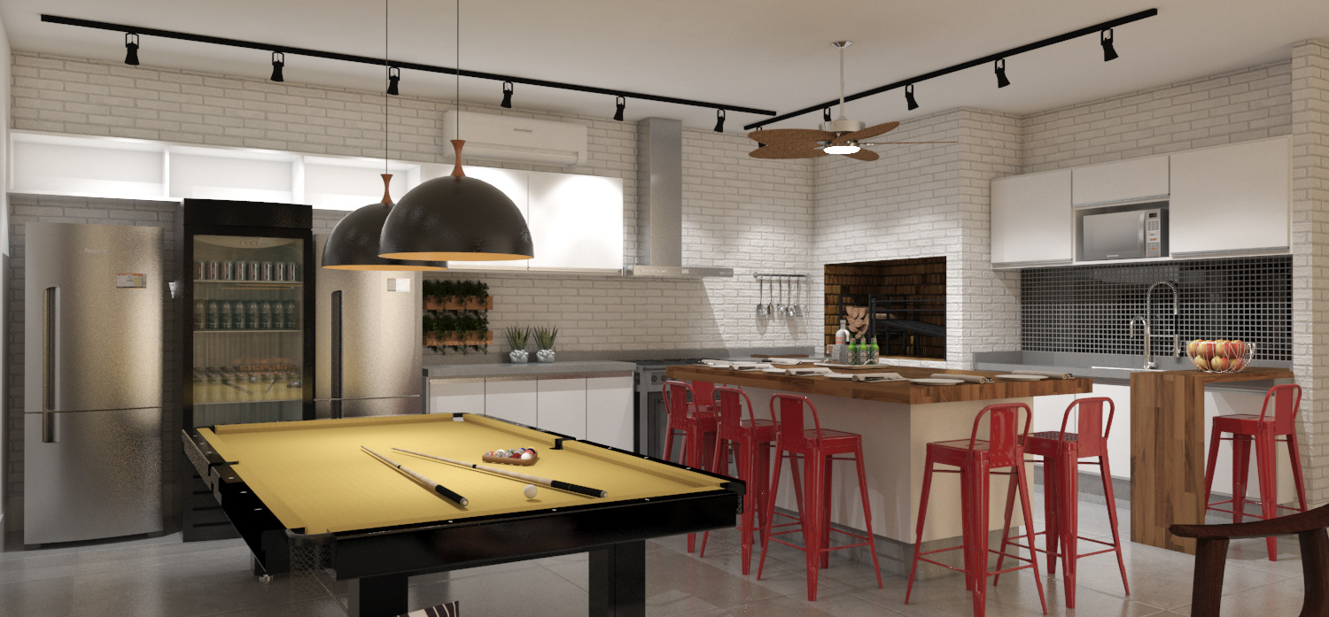 Projeto de interiores para churrasqueira, elaborado pelo Arquiteto Milton Umpierre na cidade de Pelotas/RS ARCHVIZ: MM Arquiteto