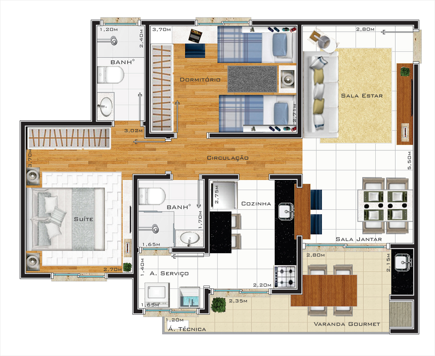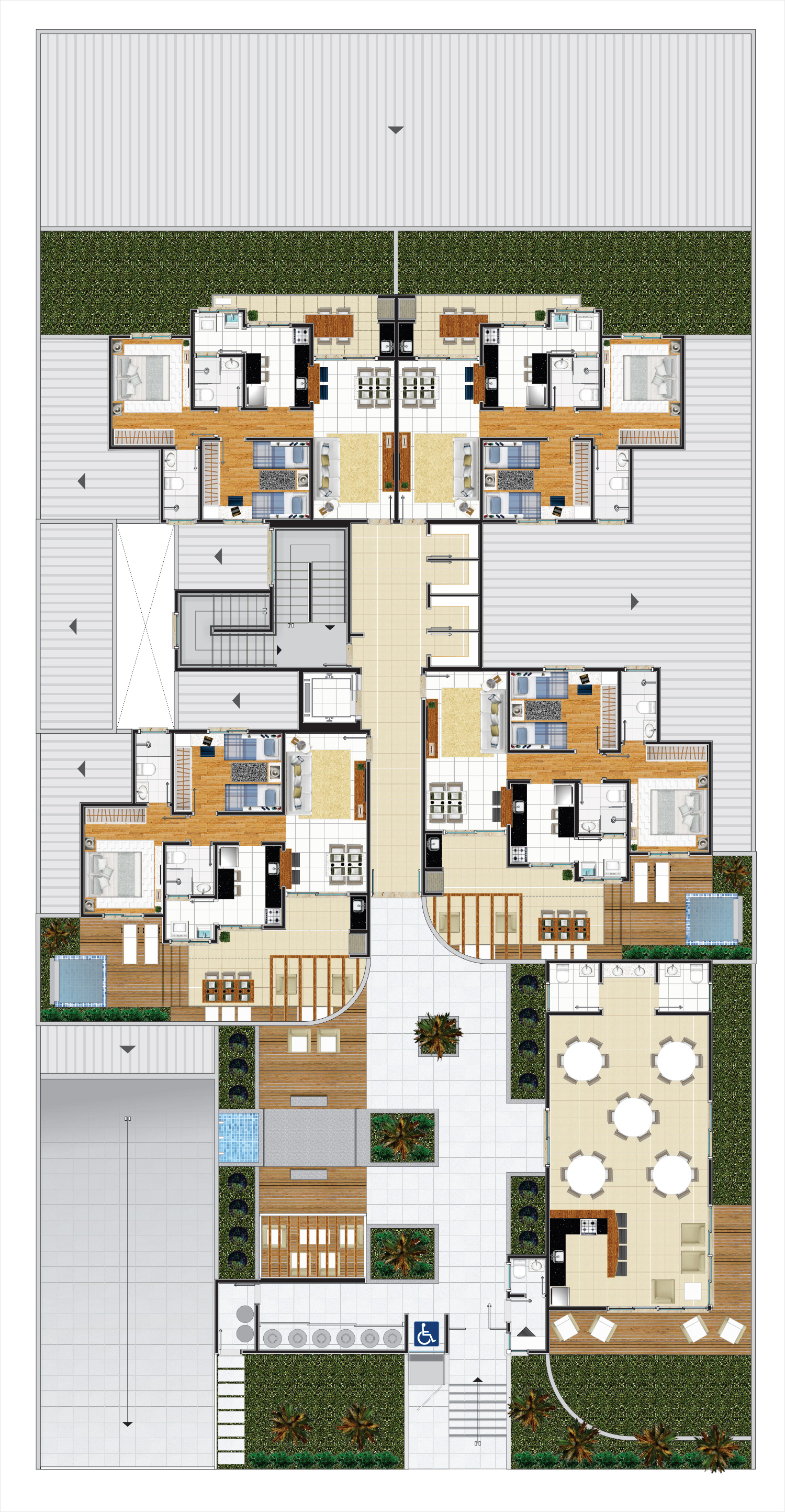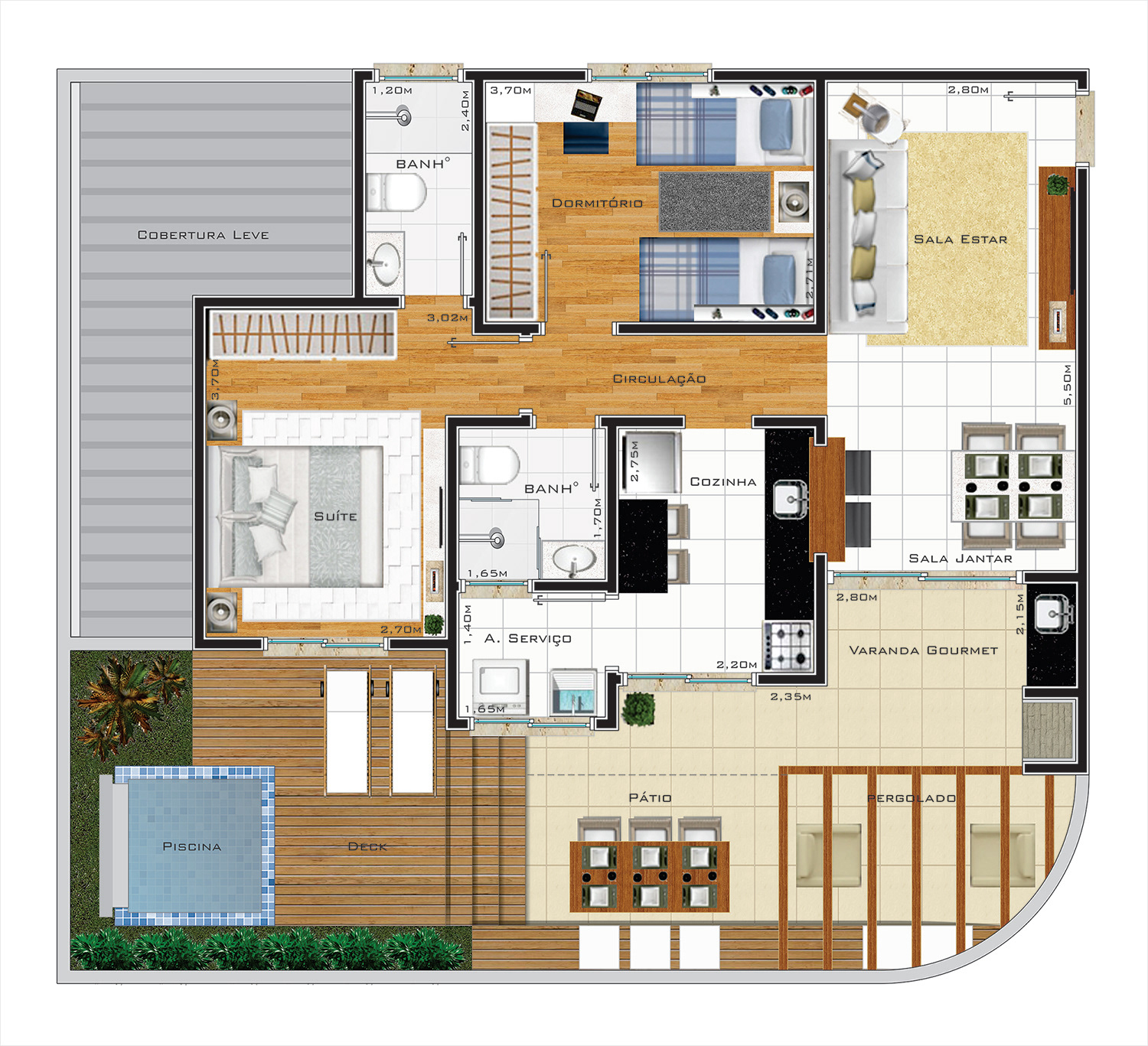 Plantas humanizadas para projeto do Edifício Alta Vista em Jaguariúna pelo Arquiteto Diego Domaradzki. ARCHVIZ: MM Arquiteto