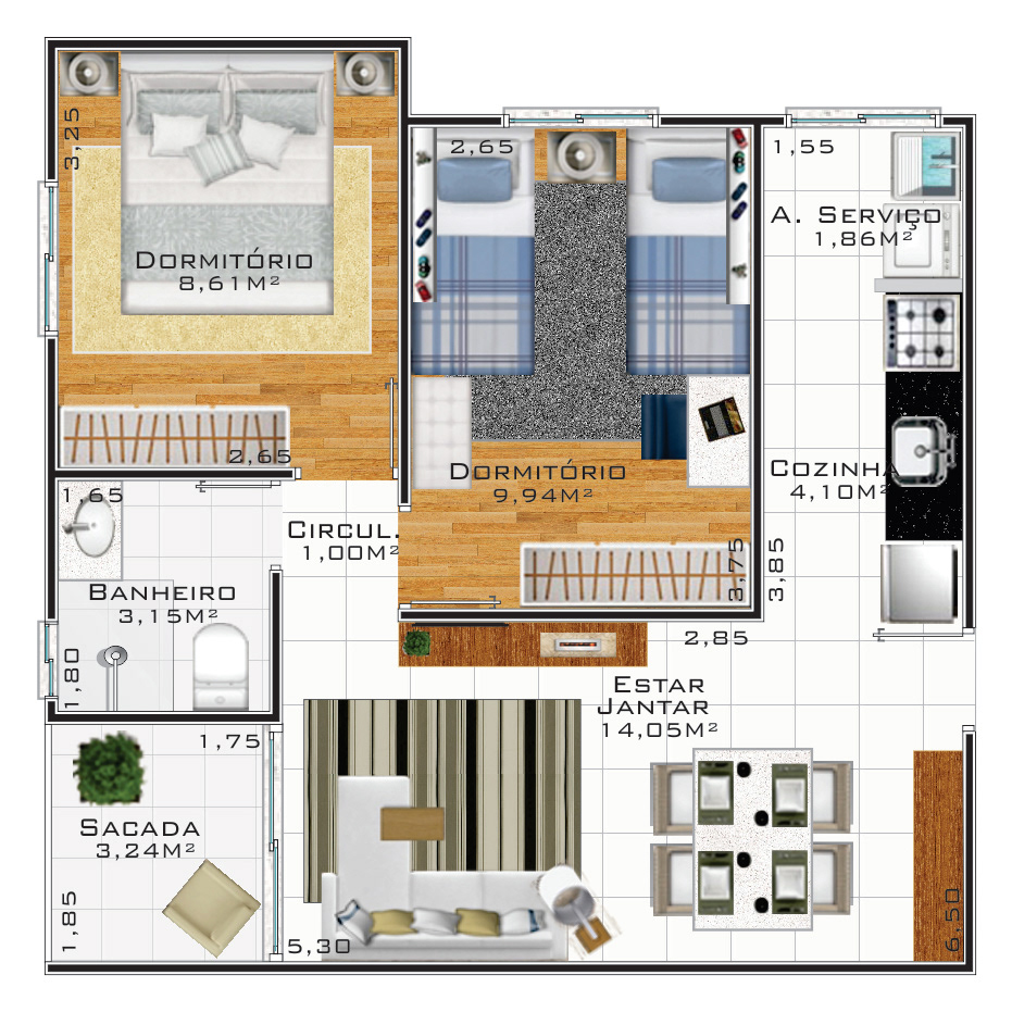 Plantas Humanizadas de projeto elaborado pelo Arquiteto Diego Domaradzki para a cidade de Jaguariúna/SP ARCHVIZ: MM Arquiteto